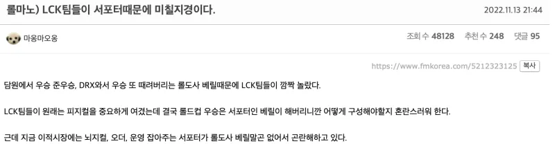 “LCK队伍们都因为辅助陷入疯狂,因在DK夺冠、拿到亚军,在DRX又夺冠的LOL道士BeryL,LCK队伍们都吓了一跳。