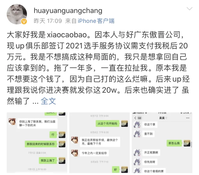 前up中单xiaocaobo发博讨薪:我只是想拿回自己应该拿到的