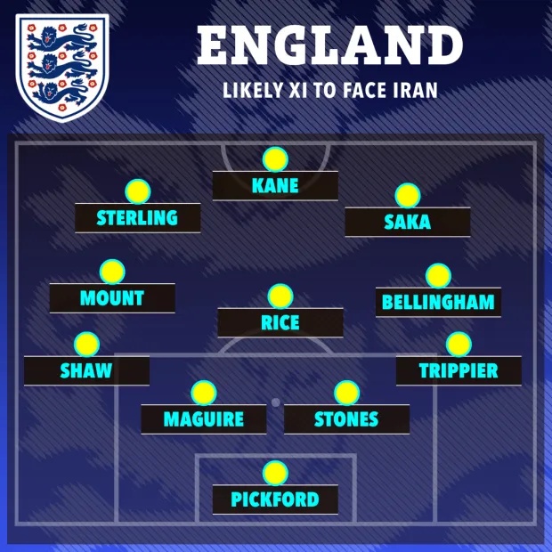 虎扑11月21日讯 根据太阳报驻卡塔尔记者团队发回的独家报道,索斯盖特将继续使用去年欧洲杯决赛对阵意大利的11名首发球员中的9人,并在对阵伊朗的比赛中采用4-3-3阵型。