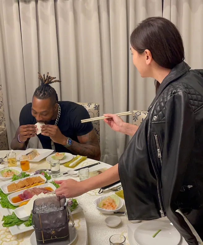 李晶晶表示霍华德尝试了各种菜色,自己更亲自帮他包了一个传统中式料理“富贵双方”,霍华德还吃了2盘左宗棠鸡,李晶晶写道:“与超nice的人共度开心的夜晚,很高兴你在这里!”