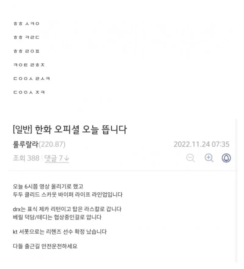 “HLE今天6点(韩国时间)公开(官宣)视频,阵容是DuDu、Clid、Scout、Viper、Life。
