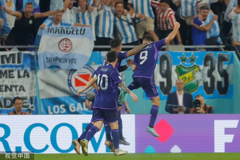 36' 麦卡利斯特前场带球送出精妙直塞,阿尔瓦雷斯抽射被什琴斯尼扑出,随后阿尔瓦雷斯兜传禁区,梅西后点头球攻门将球顶高。裁判观看VAR后示意什琴斯尼扑救时对梅西犯规,阿根廷获得点球机会。