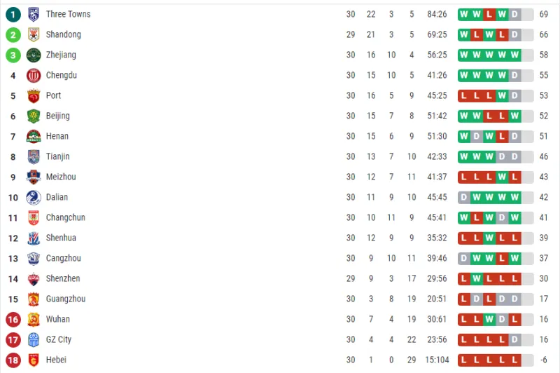 虎扑12月10日讯 中超联赛第30轮于今日进行了6场比赛,具体战报如下: