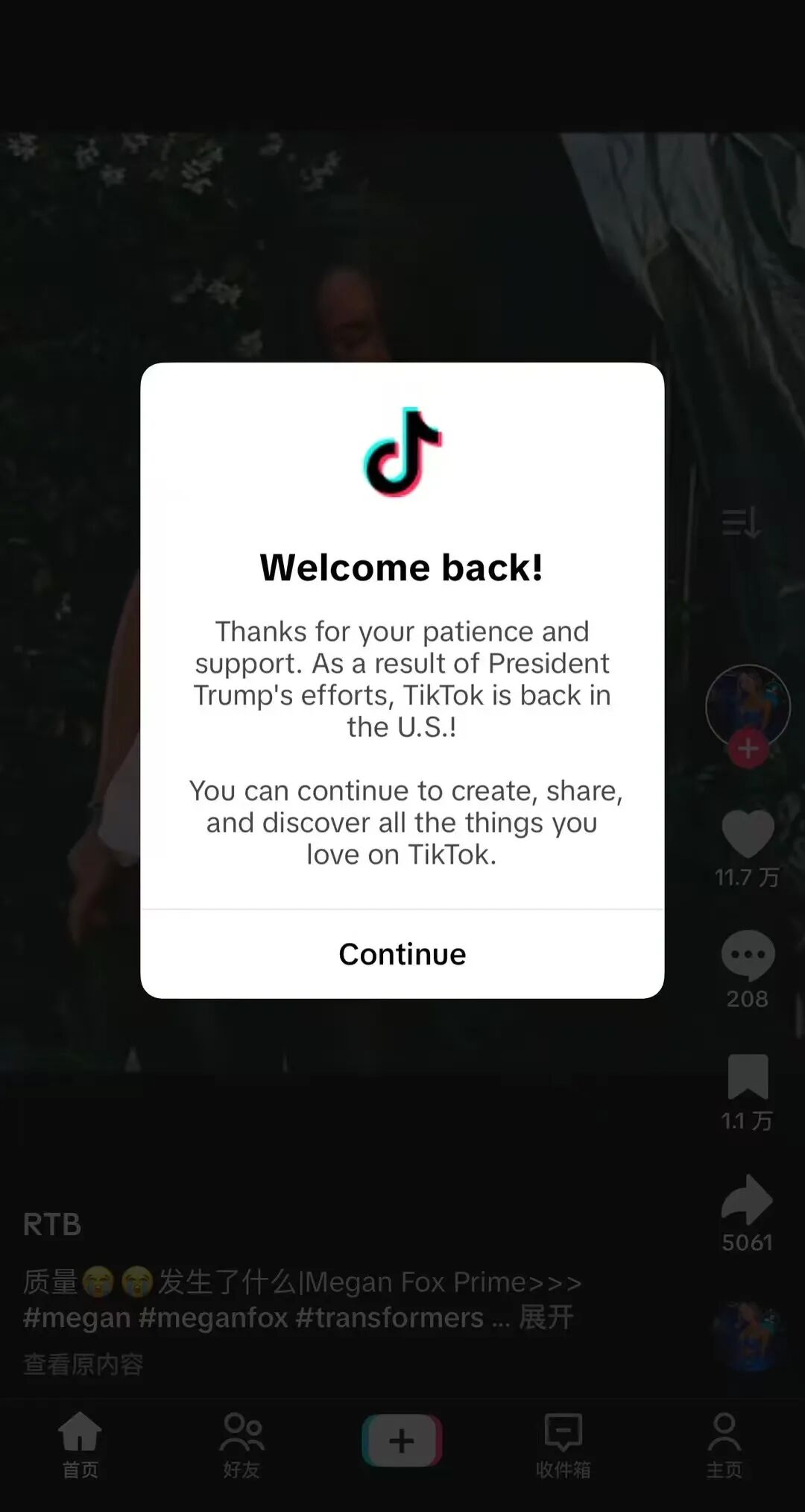 据最新消息,美国西部时间19日9时30分(北京时间20日1时30分)左右,TikTok主动宣布停止服务后,在社交媒体平台X上发表声明称:正在恢复对美国用户的服务。感谢美国候任总统特朗普向TikTok的互联网服务提供商做出了必要的澄清和保证,使其不会为协助维护TikTok正常运转而遭受处罚,并将与其合作制定一项长期解决方案,让 TikTok 继续“留在美国”。目前TikTok应用程序已恢复正常使用,TikTok网站也已恢复正常。nR7拜客生活常识网