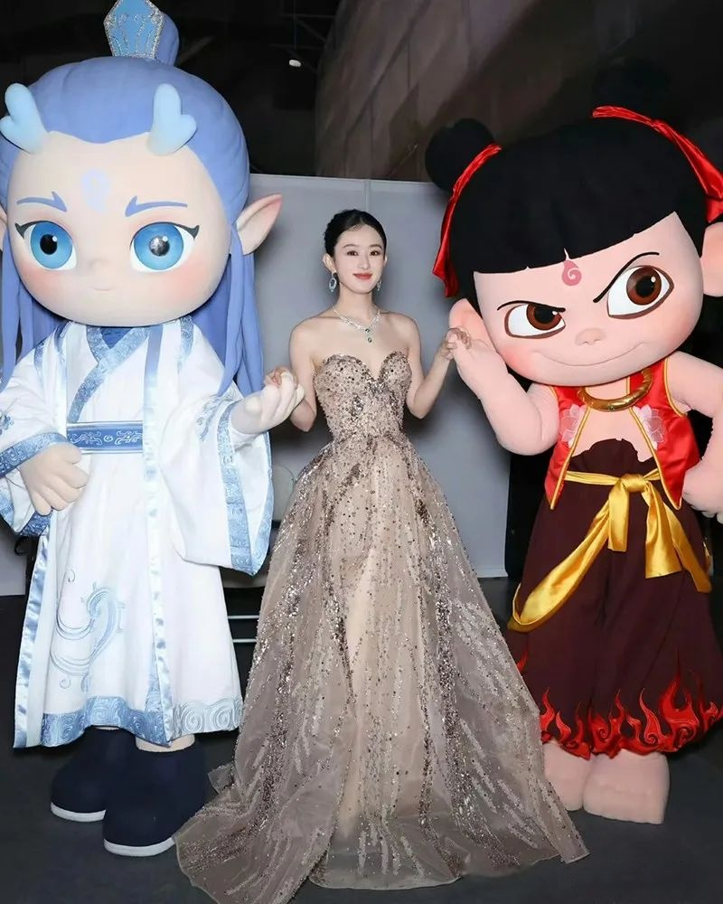 这件礼裙真是又华丽又梦幻,看上去就好像是闪闪发光的水晶一样,将赵丽颖衬托得仙气十足,她秀丽的容颜格外惊艳,就仿佛真人版龙族公主走到了现实中。要知道,《哪吒2》上映的时候,龙族公主的人气真的非常高。甚至有不少观众表示,自己就是为了这个角色进电影院的。龙族公主不仅容貌美艳,气质脱俗,而且也是非常有个性,那种高贵的气质让人神往。当时,赵丽颖正在出席某场活动,活动场地刚好摆放着哪吒和敖丙的人偶。作为哪吒的狂热粉丝,她自然是要和电影中的两个主角合影的。
