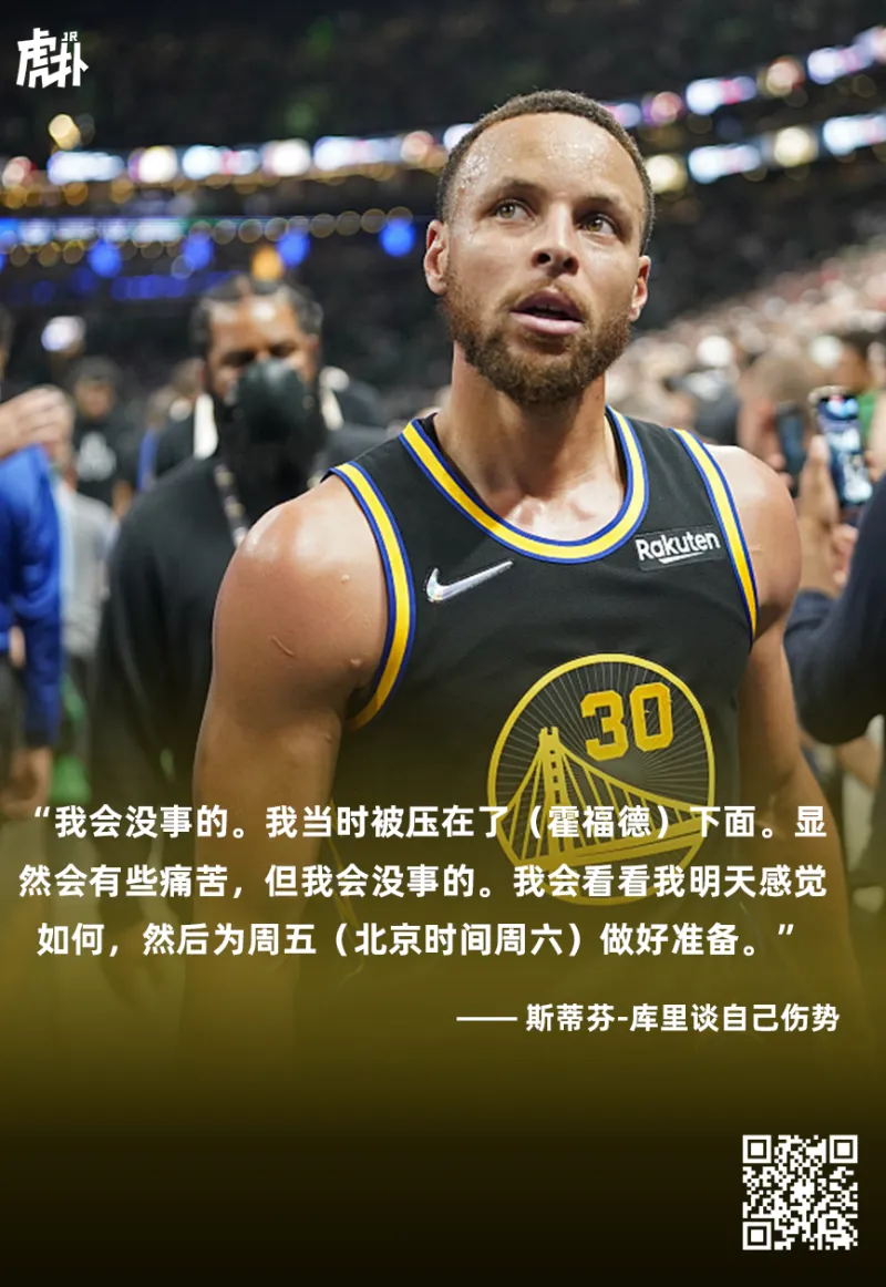 谈到此前对阵凯尔特人冲抢地板球曾扭伤脚踝,库里表示:“和三月对阵凯尔特人那次一样,但这次没那么糟糕。”