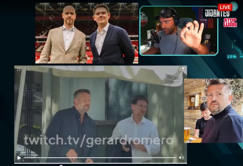 07月11日讯 根据加泰知名记者Gerard Romero刚刚在直播中独家披露的画面,曼联CEO理查德-阿诺德与曼联足球总监莫塔夫今天出现在了巴塞罗那。