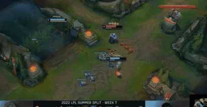 9分钟,峡谷先锋团战一触即发,猫咪大招控制三人,武器大师先行阵亡,FPX完成一波0换3团战。