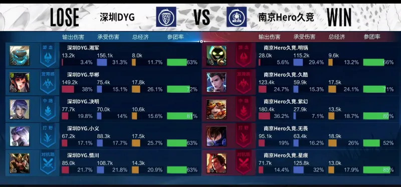 蓝色方:深圳DYG 红色方:南京Hero久竞