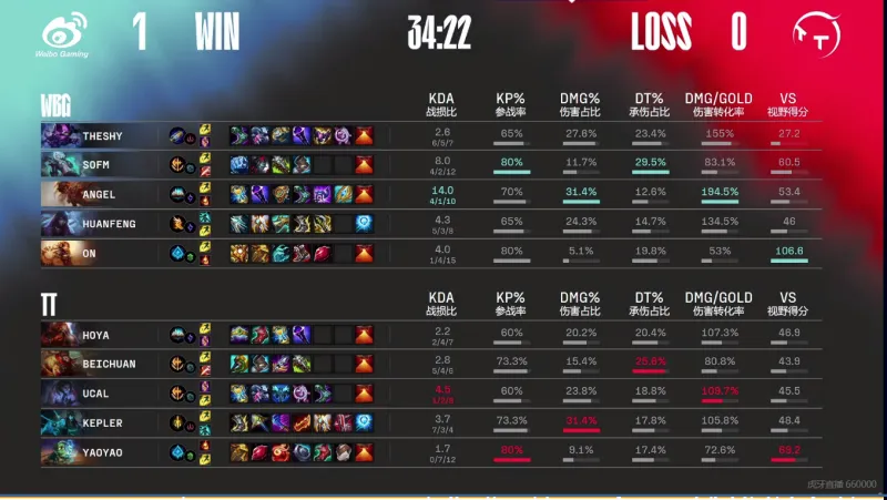 WBG选用:TheShy凯南、SofM破败之王、Angel岩雀、huanfeng厄斐琉斯、ON日女