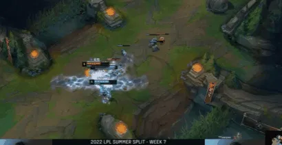 31分钟,阿木木先行开团,塞拉斯绕后开团依靠凯南大招进场,TT完成一波2换4团战。
