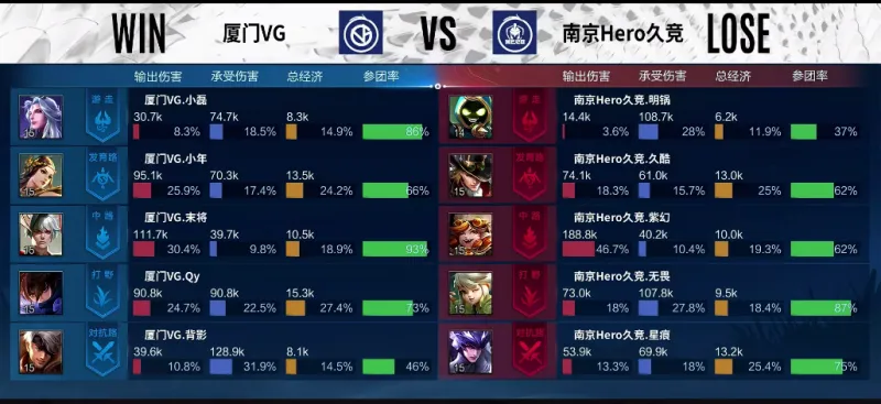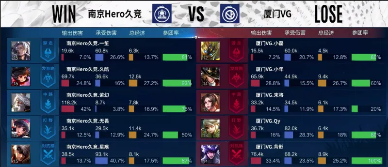 蓝色方:南京Hero久竞 红色方:厦门VG