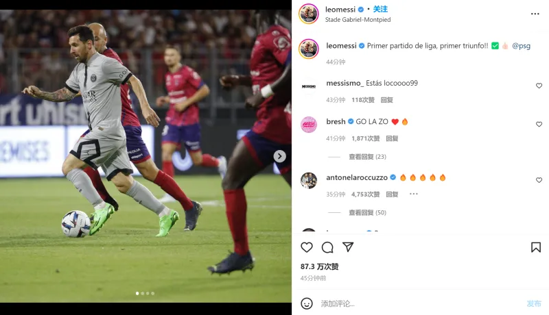 梅西在Ins上这样写道:“本赛季的第一场联赛,收获了第一场胜利!”