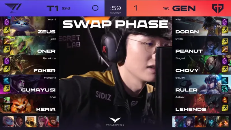 GEN选用:Doran剑魔、Peanut瑟庄妮、Chovy塞拉斯、Ruler尼菈、Lehends炼金