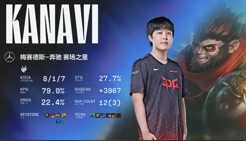 24分钟:卢锡安走位不慎被冰女控到送出人头,凯南进场也被秒掉,随后JDG乘胜追击打出三换四