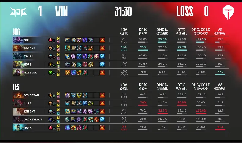 JDG选用:369凯南,Kanavi猴子,Yagao冰女,Hope泽丽,Missing露露
