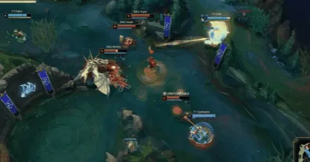 11分钟,小龙团战一触即发,蔚先手开团无果,T1完成一波1换2团战,顺势拿下小龙。