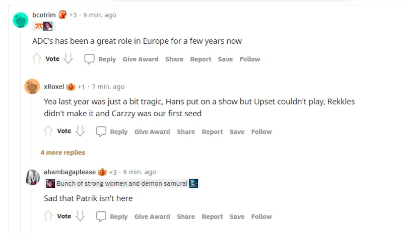 去年有点惨,Hans sama打得不错,但是Upset没能打世界赛。Rekkles没能打进世界赛,Carzzy是我们的一号种子。