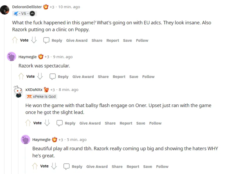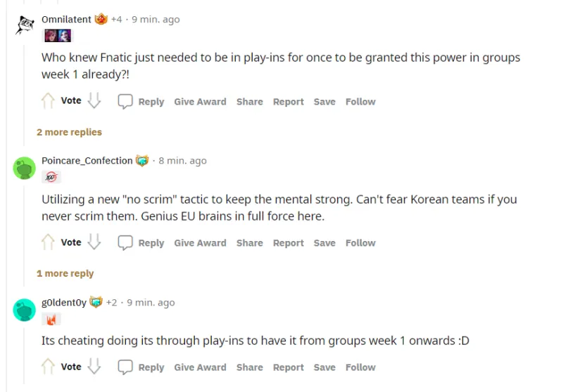 FNC vs T1 / 2022年全球总决赛小组赛 A组 / 赛后讨论(未经允许禁止转载,搬运截图)