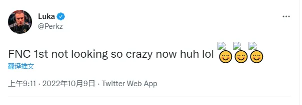 Perkz:FNC小组第一看起来不那么疯狂了,哈哈哈