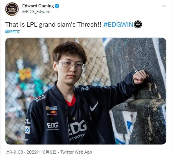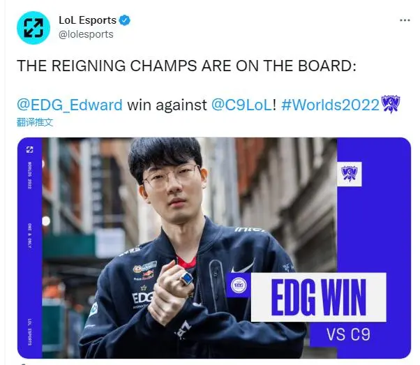 LOL赛事官推:卫冕冠军EDG击败了C9!
