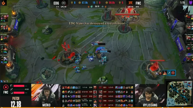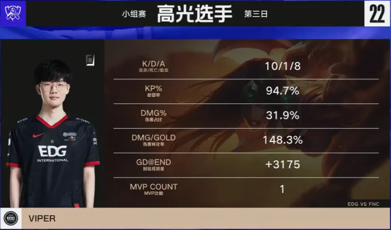 1分钟,FNC入侵野区无果,EDG顺势反打完成一波0换2团战,希维尔拿下双杀。
