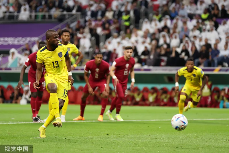 16' 瓦伦西亚突破造点,亲自主罚命中,打入本届世界杯首球!卡塔尔0-1厄瓜多尔!