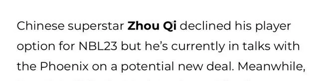“StarXia澳洲篮球”在微博上写道:“据悉,目前谈判的关键在于 虽然周琦团队希望与东南墨尔本凤凰队重新签订一份长约,但是新的合约内有更多附加条款(国家队比赛优先条款,NBA跳出条款等等)。