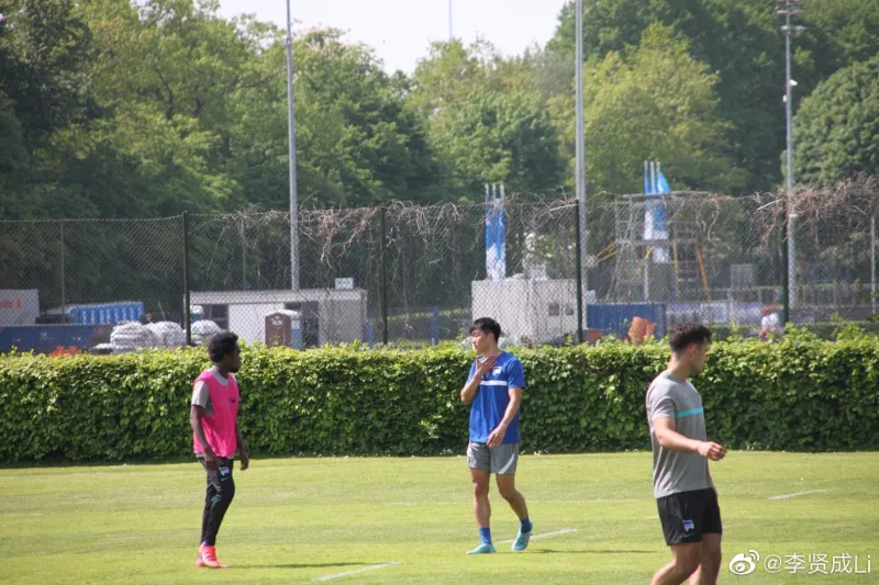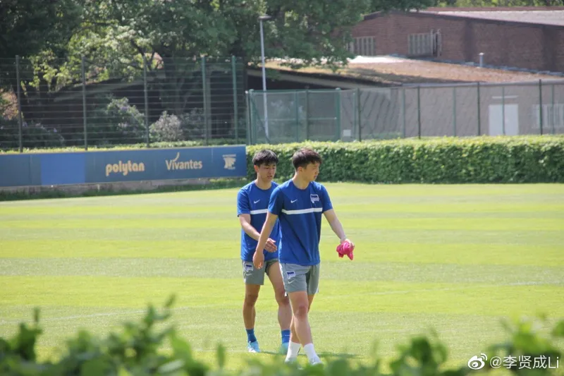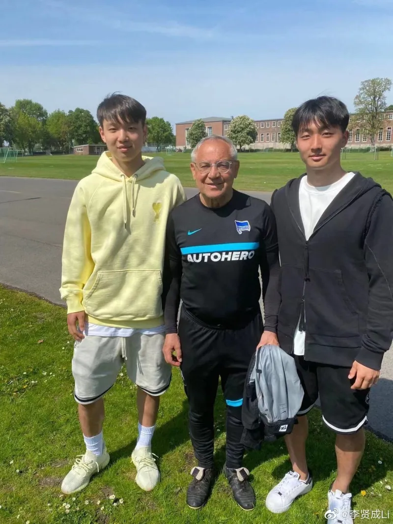 李贤成晒出了与队友王博文以及一队主教练马加特的合影并写道:“来柏林赫塔二队试训,下一步就是职业了。”