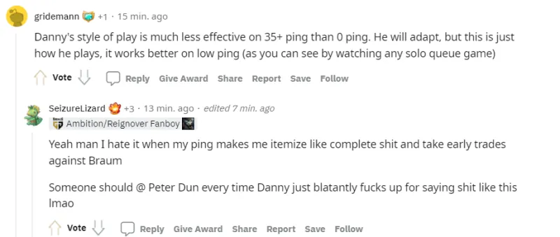 Danny的打法在0ping的时候比较有效,在35ping就没那么有效。他会适应的,但是这就是他的打法,在低ping下会好很多(你看看他任何的单排视频你就知道了)。