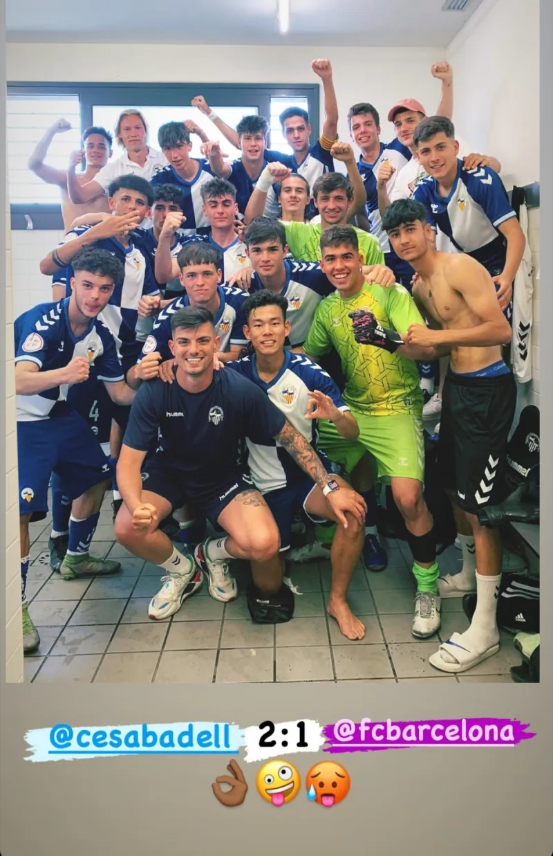 下半场,何小珂送上一个助攻,最终帮助球队2比1战胜巴萨青年队,以一场胜利为本赛季收官。赛后,何小珂发视频庆祝,赤裸上身,挥拳庆祝这来之不易的胜利。