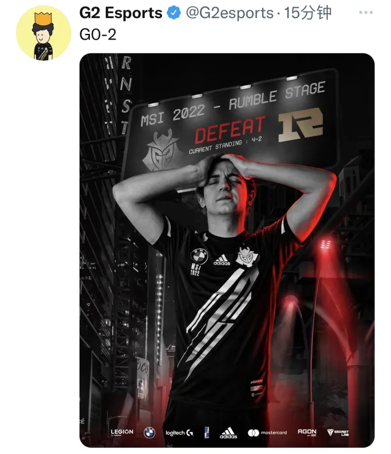 05月22日讯 G2负于RNG,在2022MSI对抗赛第三个比赛日两连败,赛后G2官推、LEC官推更新相关内容,翻译如下: