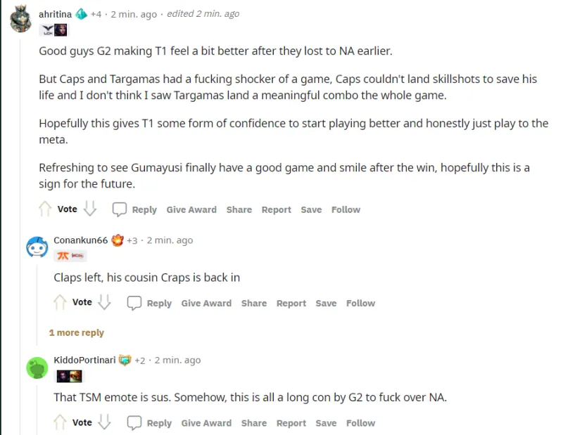G2 vs T1 / 2022年MSI 对抗赛阶段 / 赛后讨论(未经允许禁止转载,搬运截图)