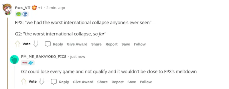如果G2没打进下一轮的话,这一定是英雄联盟历史上最大的崩盘。