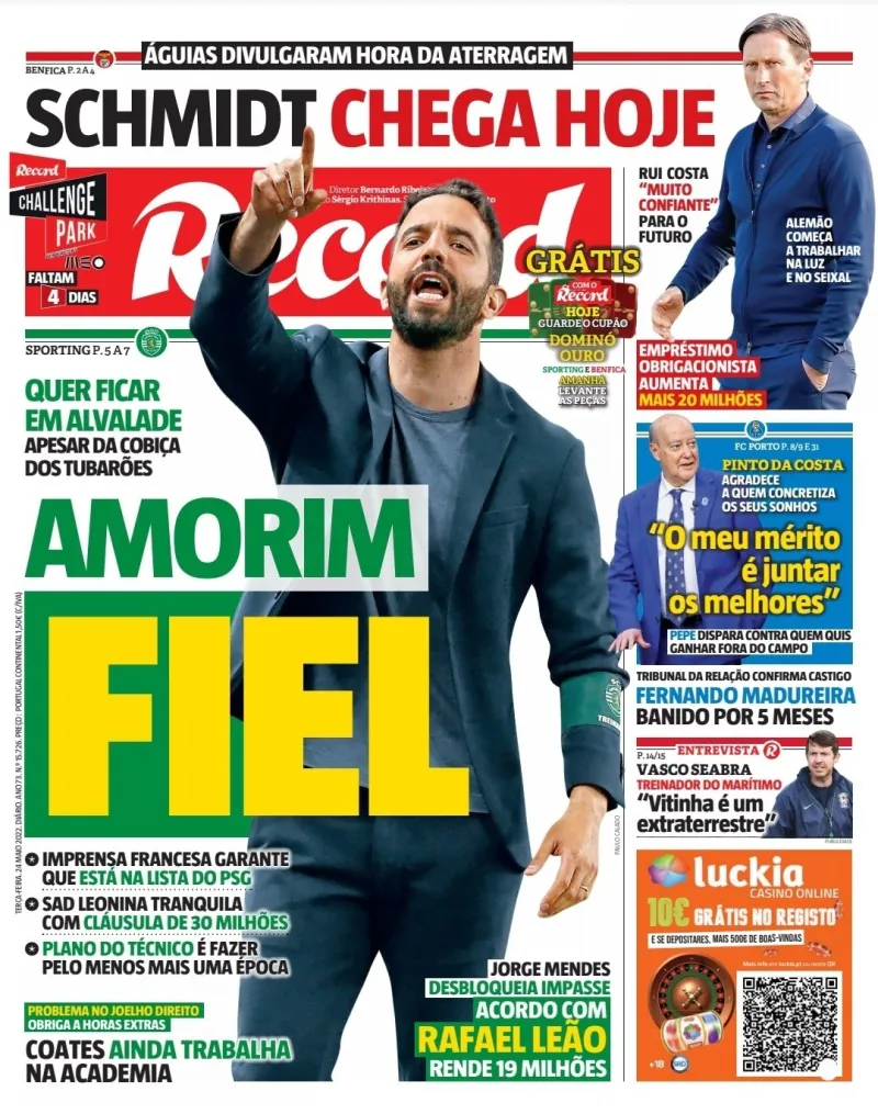 至于记录报,他们明确表示阿莫林离队的“窗口”已经关闭,他不会在今夏离开葡萄牙体育。