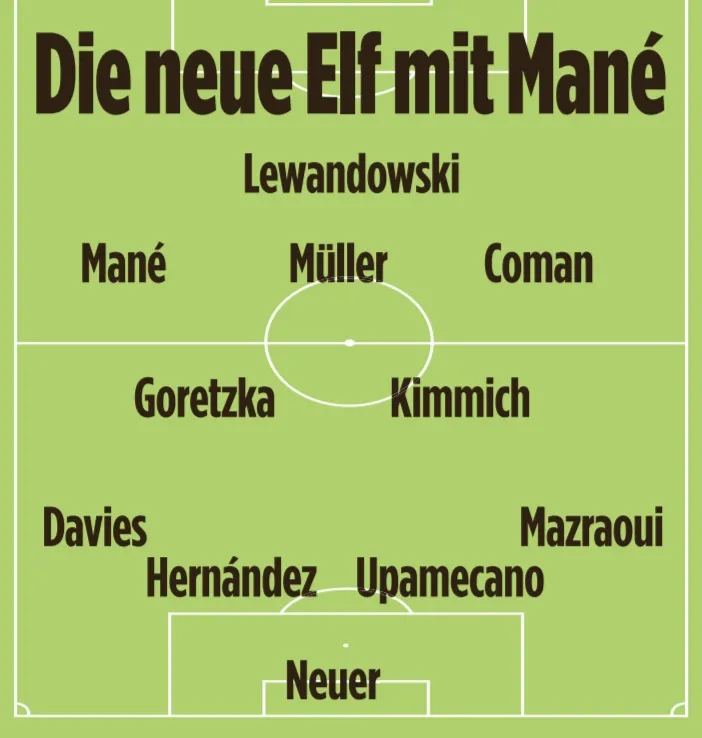 可能是由于这笔交易过于接近现实,《图片报》甚至已经对拜仁慕尼黑下赛季的排名布阵进行了预测。首发11人方面分别是:诺伊尔、马兹拉维、乌帕梅卡诺、卢卡斯、阿方索、基米希、戈雷茨卡、科曼、穆勒、马内、莱万多夫斯基