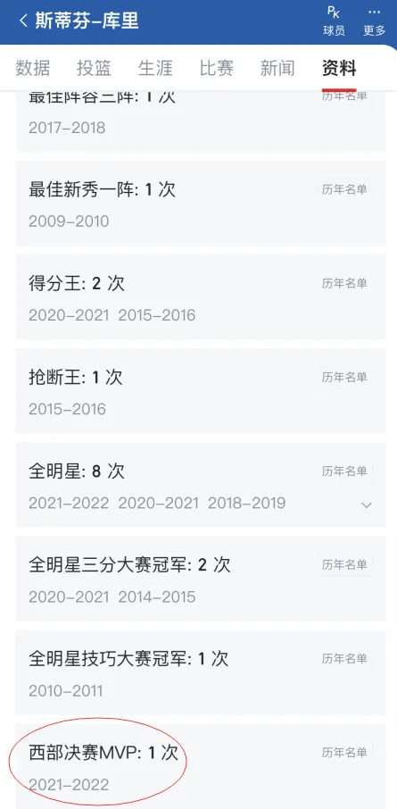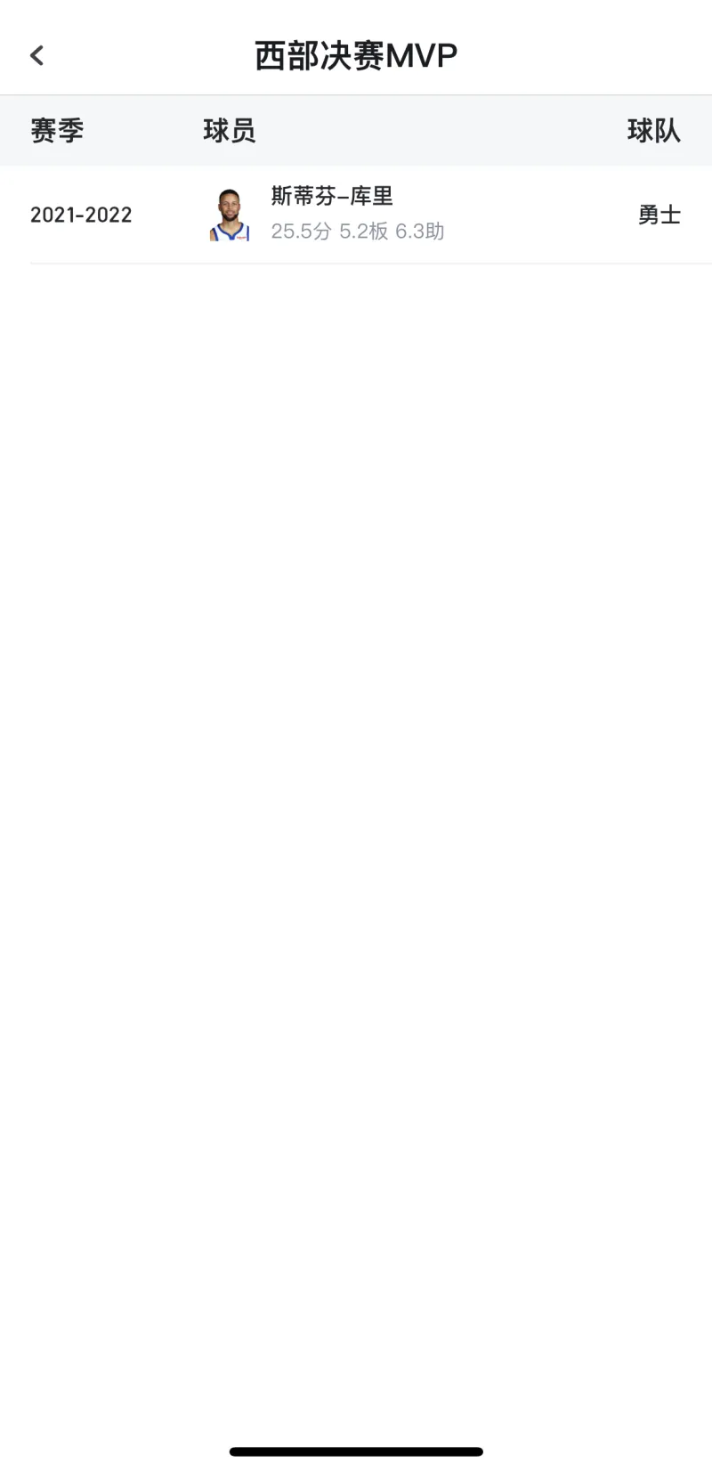 斯蒂芬-库里获得西部决赛MVP,这是联盟设立西部决赛MVP以来,第一位获得该奖项的选手。