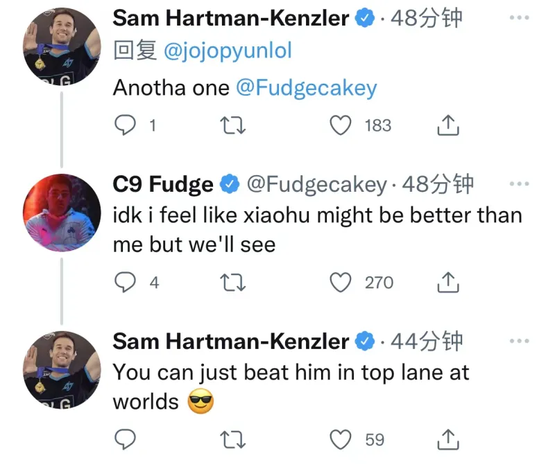 后LCS解说Kobe回复:“另一个Fudge。” (Fudge在2022LCS春季赛转为中单位,夏季赛又将转回上单位。 ”