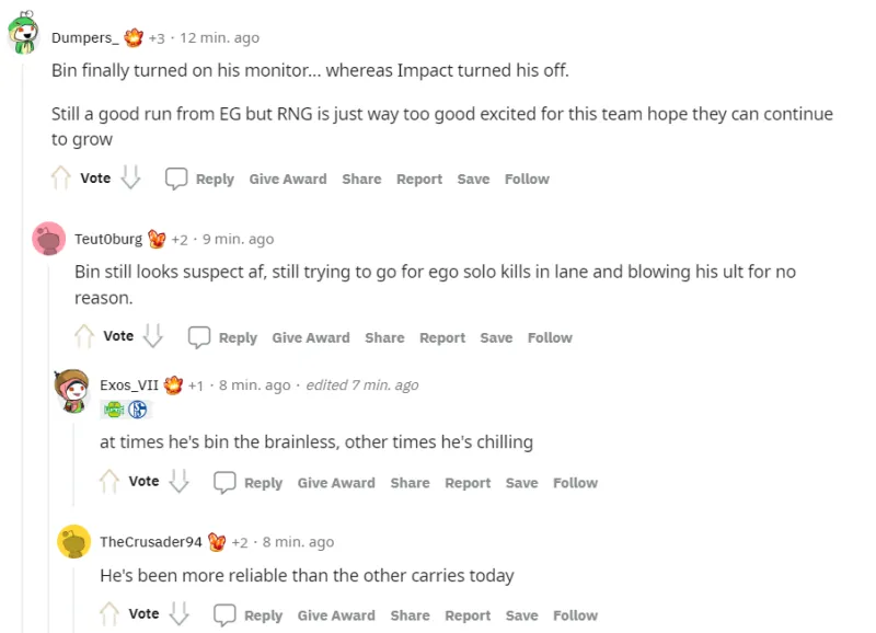 EG这一路算是不错,但是RNG要强太多了。EG让人感到兴奋,希望他们能继续成长。