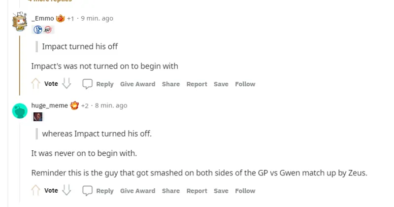 要记得Impact的格温和船长被Zeus正反手吊打。