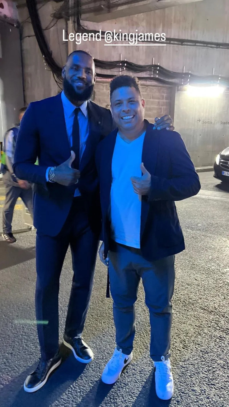 赛后,巴西足球名宿罗纳尔多通过Instagram Story晒出了他和詹姆斯在决赛球场外的合影。
