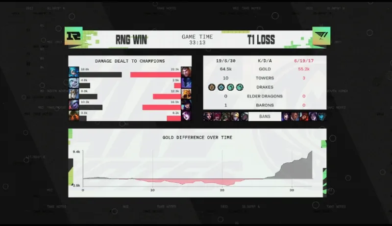 31分钟:RNG在野区再次逮到T1强行开团,格温进场无人能挡打出一换五,RNG一波结束比赛