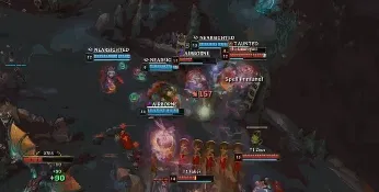 15分钟:RNG率先向杰斯发难但是莫甘娜给盾躲过攻势,随后T1反打击杀泰坦佛耶戈,RNG也拉扯收掉了杰斯莫甘娜,双方打出二换二