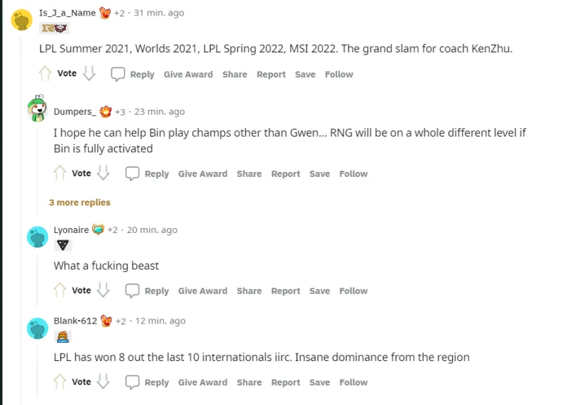 我要没记错的话,过去的10次国际比赛中,LPL赢了8次。这个赛区的制霸太疯狂了。