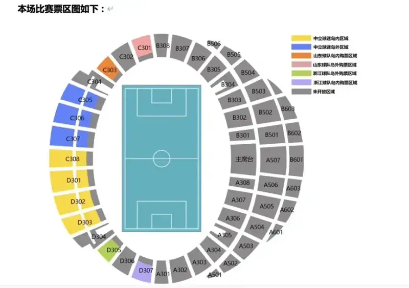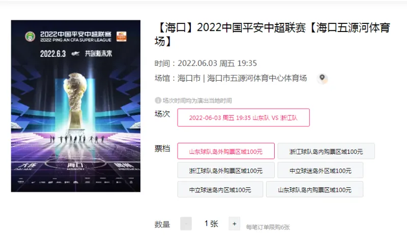 而根据该票务网站的信息,购票区共分为6个可选择项目,而且海南岛内外球迷均可购买。