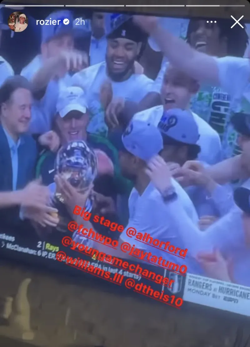 “大舞台@艾尔-霍福德@杰伦-布朗@杰森-塔特姆@马库斯-斯马特@罗伯特-威廉姆斯@丹尼尔-泰斯。”罗齐尔附文道。