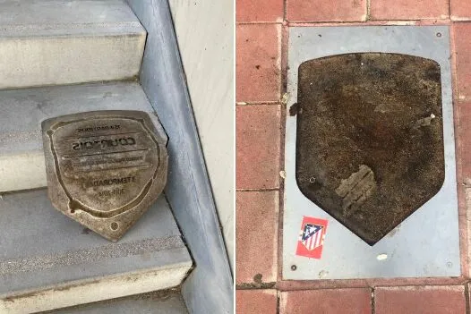 05月31日讯 当地时间5月30日下午,在马德里竞技主场大都会球场外的传奇走廊上,出现了惊人的一幕:曾效力于马竞,并在刚刚随皇家马德里夺得欧冠冠军的比利时门将库尔图瓦的传奇铭牌被人挖了出来,扔在了楼梯上。