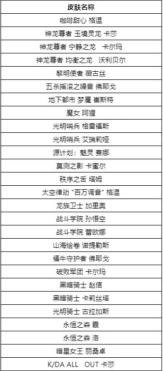 【冠军阵容皮肤限时销售活动即将开启】