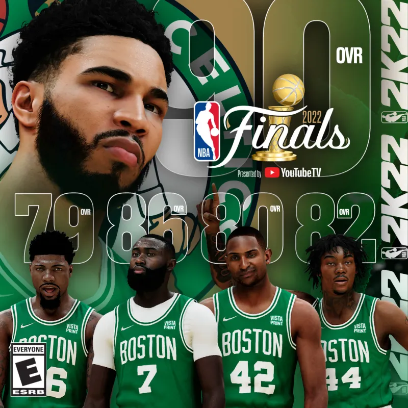 06月01日讯 NBA官方今日晒出了勇士与凯尔特人阵容中2K能力值最高的5名球员。