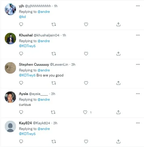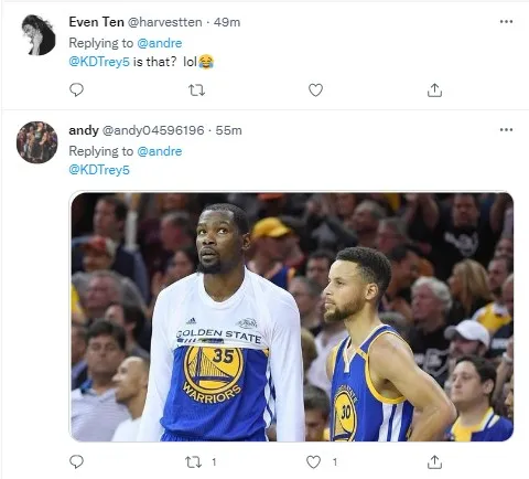 随后网友在下方评论区疯狂@杜兰特,并附上看戏等等表情符号,可谓是看热闹不嫌事大。